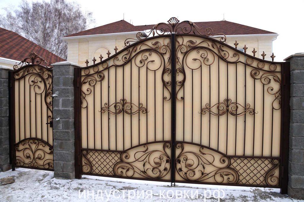 красивые автоматические или распашные кованые ворота из профнастила и чертежи для изготовления своими руками