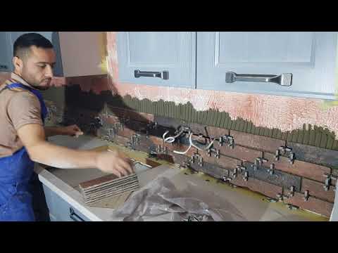 - Монтаж фартука на кухне из МДФ строительным клеем: