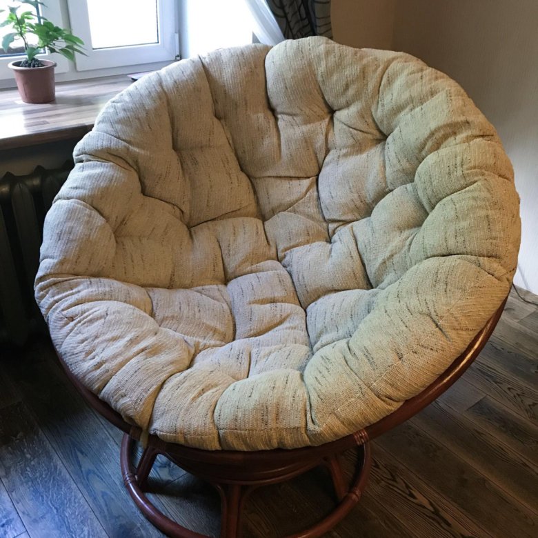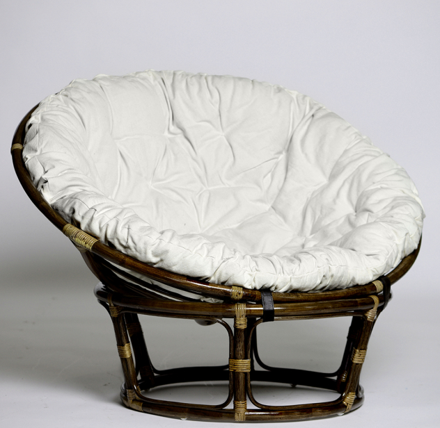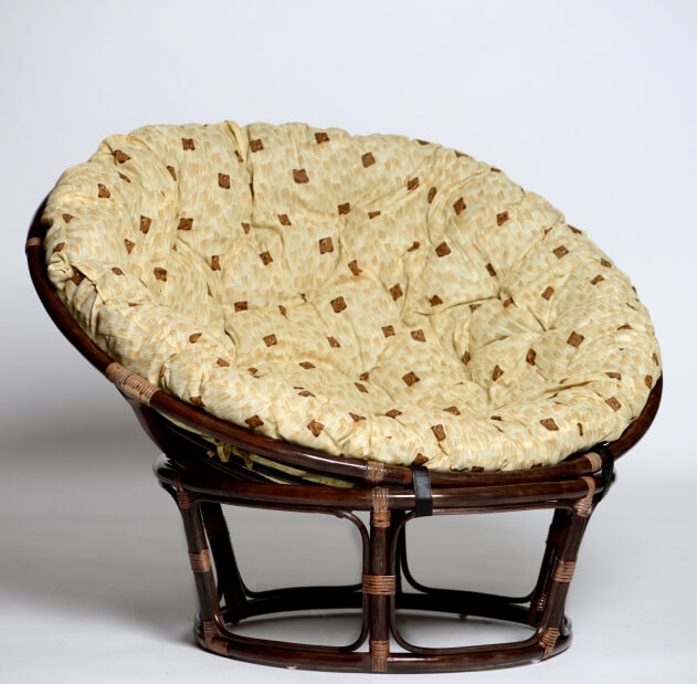 - мягкой сидячей поверхности, выполненной в виде подушки, которая укладывается на вертикальную раму. Подушка для кресла папасан зачастую очень мягкая и удобная в использовании. Она может быть выполнена из текстиля разной фактуры, цвета и рисунка, что позволяет подобрать актуальный вариант под отделку комнаты.