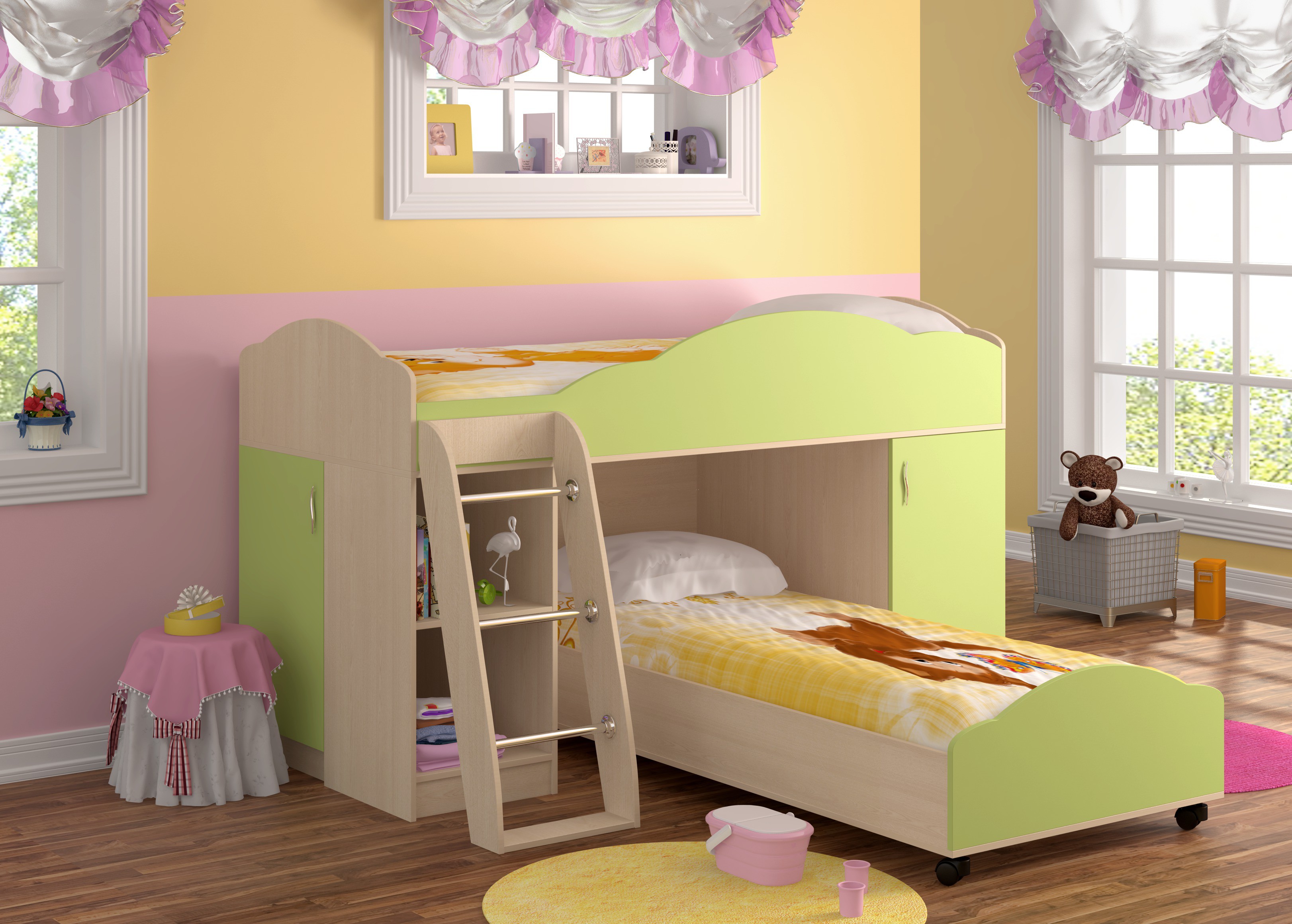 Низкая кровать-чердак для девочки