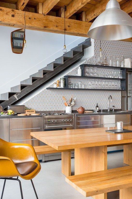 При правильно оформленном интерьере кухня под лестницей может быть довольно функциональной, стильной и необычной.