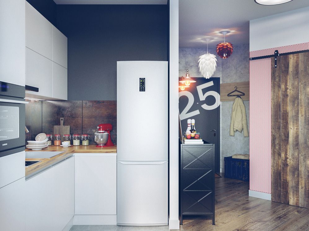 Холодильник — довольно крупный предмет, что одновременно хорошо и, так сказать, неудобно. Неудобно, если холодильник большой, а кухня маленькая. Да, объемный холодильник можно загрузить множеством продуктов и не ходить в магазин за покупками ежедневно. Но разместить такого монстра в интерьере кухни часто становится проблематично. Идеальный вариант — заказать дизайн проект однокомнатной квартиры и переложить эту задачу на плечи специалиста, но не всегда это возможно. Поэтому предлагаем ознакомиться с нашими рекомендациями далее.