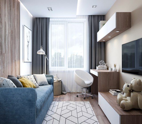 Для одного человека достаточно визуально поделить помещение, но дизайн однокомнатной квартиры для семьи с детьми должен предусматривать возможность уединения.