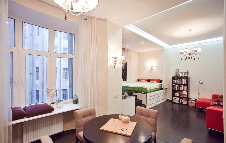 Существует несколько способов разделения комнаты на гостиную и спальную зону:
