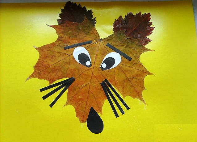 Как правило, младшие школьники используют в своих работах сухие листья всех возможных форм, цветов и размеров. Наиболее легкие осенние поделки, которые может отнести в школу ученик младших классов, — это простые аппликации из листьев в виде симпатичных зверушек, рыбок или птичек.
