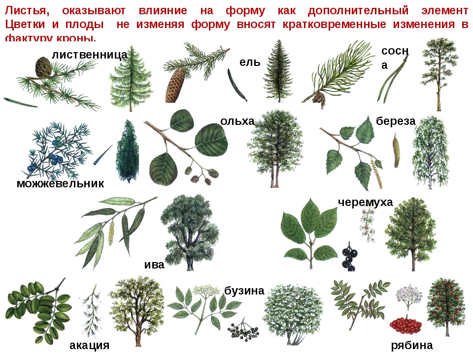 В кратком описании каждого дерева, можно узнать их особенности, как выглядит, где растет, возраст, интересные факты о дереве.Строение дерева — разделения дерева на основные части: корни, ствол, крона.