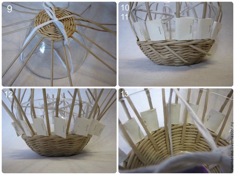 - Весь шаблон плетется, и заготовка прикладывается к контейнеру, который будет плести.