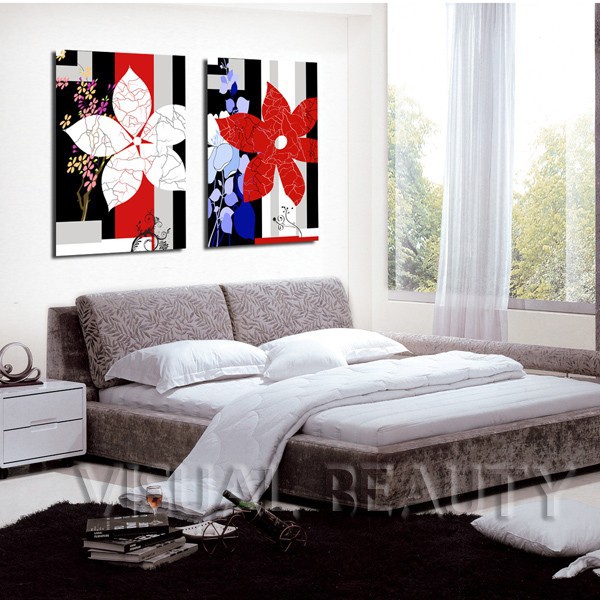 Очень популярны изображения цветов. Такие украшения способны преобразить интерьер и осветить его сочными красками. Например, большая и яркая картина с цветочной композицией может украсить пустую стену в спальне. Подобные изображения рекомендуется вешать в хорошо освещенных местах комнаты, так как в тандеме с естественным светом они смотрятся очень красиво и привлекательно.