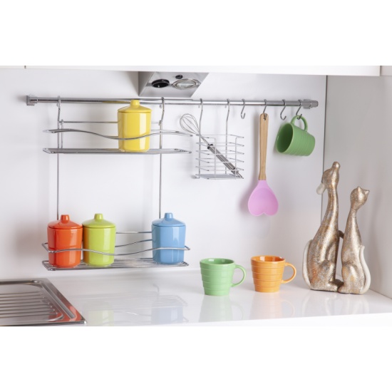 В комплекты современных кухонных гарнитуров и навесной мебели часто входят металлические шины – жёсткая фигурная планка с отверстиями и отгибами для навески кухонных шкафов на специальные крючки.