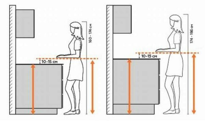 - рост всех членов семьи или хотя бы того, кто проводит на кухне больше времени.