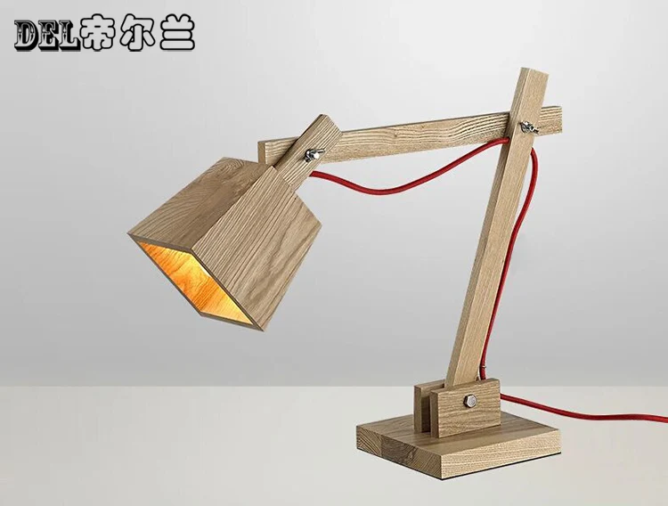 Настольная деревянная лампа в форме пирамиды с абажуром