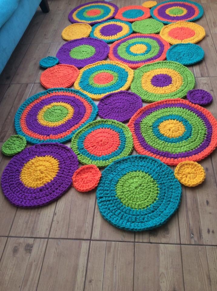 Если у вас есть более открытое и большое пространство для заполнения, идеальным решением станет вязаный крючком коврик в форме круга или овала.