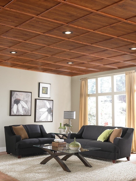 Другой вид отделки потолка – использование потолочной плитки. Благодаря этой технологии, в наше время потолки можно оклеивать пробковыми, ламинированными и пенополистирольными панелями. Такие потолки отличаются изысканным видом и отличным качеством.