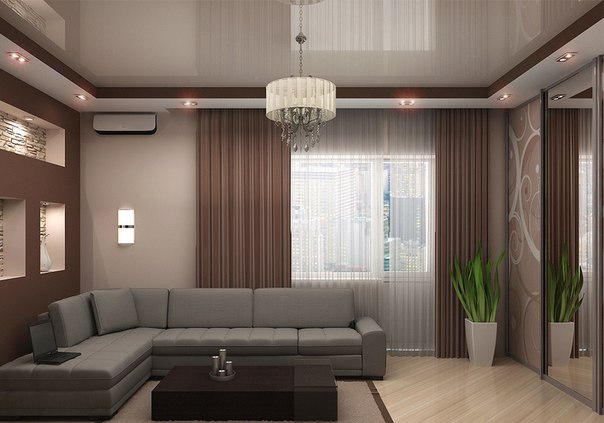 Очень важной особенностью натяжных потолков является то, что они полностью скрывают любые строительные дефекты, которые существуют на потолке. Натяжные потолки современный дизайн фото вариантов, которые зрительно увеличивают высоту комнаты: