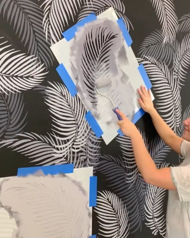 На случай, если в комнате предусмотрено несколько цветовых решений или наличие орнамента, совершенно необязательно приобретать обои с рисунком. Для стандартного полотна под покраску можно приобрести специальный трафарет на любой вкус и изображение и, приложив его к стене, сделать уникальный и индивидуальный узор на обоях.