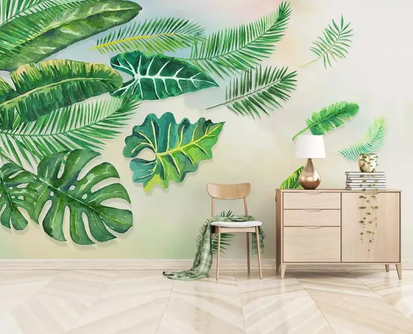 На сайті представлені тропічні рослини в соковитому зеленому кольорі, золотому, пудровому, бронзовому, червоному та інших цікавих варіантах.Вінтажні і розкішні темно-зелене листя привнесуть в інтер’єр неповторну атмосферу, гармонійно підкреслять переваги простору. Намальовані листя банана або патерн підійдуть для створення не нав’язливого і модного образу в квартирі або офісі. Листя з квітами і барвистими папугами стануть яскравим акцентом в дитячій кімнаті.
