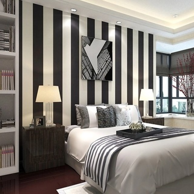 Они создают иллюзию вытянутого пространства. Широкие полосы придают более чистый, утонченный вид и делают стены шире, чем они есть на самом деле.