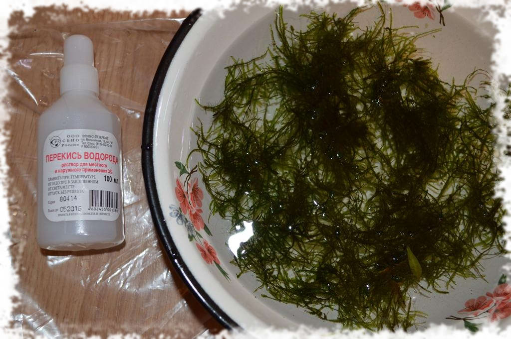 - Замочите мох в растворе на 10 минут.