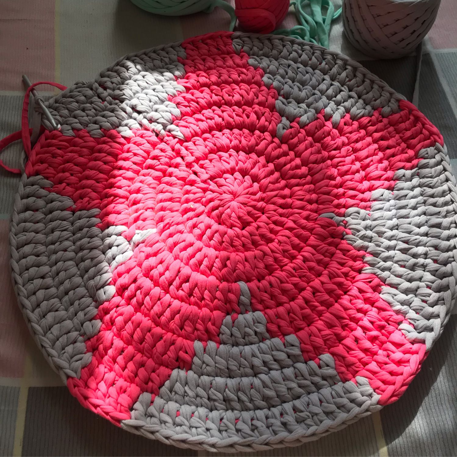 Вы можете сделать такой коврик однотонным или многоцветным, главное, чтобы цвета подходили друг к другу.