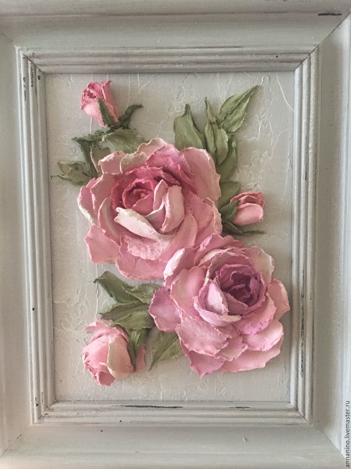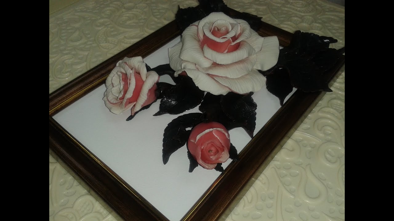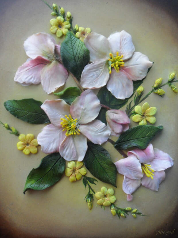Потом ещё два года искала подходящий рецепт холодного фарфора, чтобы делать его самостоятельно. Сначала я делала совсем небольшие работы. Например, одну розу или маленький букетик цветов. А затем стала делать настенные панно. Первую же работу которую я выставила сразу купили. Это меня очень воодушевило.