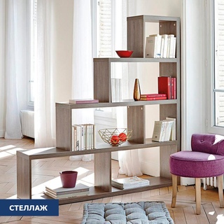 Существует множество вариантов стеллажей для дома.Если вы хотите создать дизайн своими руками, только интерьер всего дома и стоимость, в которую обойдется устройство перегородки, могут ограничить полет вашей фантазии. В основном это будут расходы на строительные материалы.