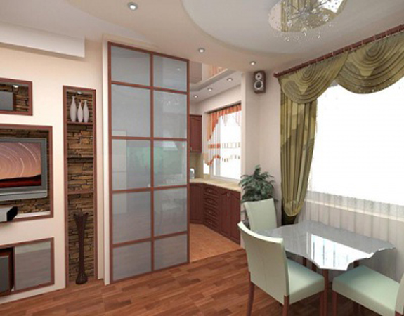 - — Если в квартире есть газовая плита, то совмещать кухню и жилое помещение нельзя! По СНИПам помещение с газовой плитой должно закрываться дверью;