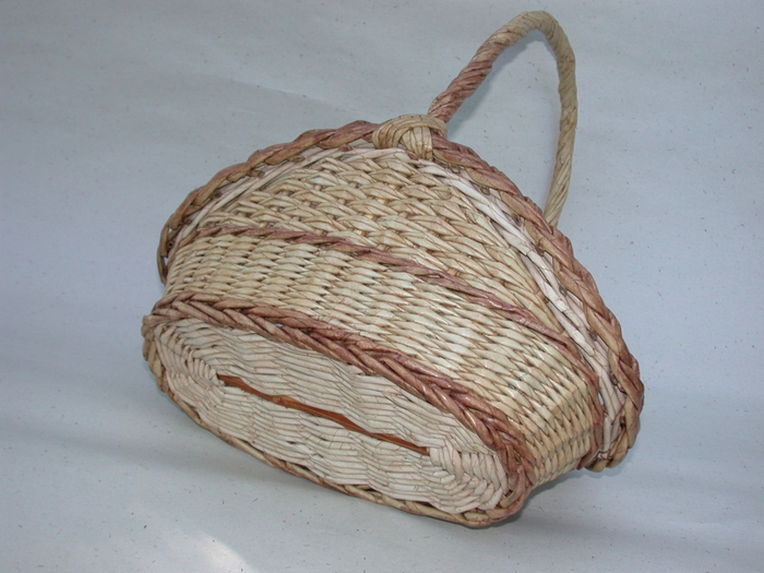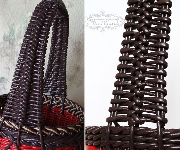 Снабжаем нашу корзину ручками. Делаем в виде петельки из той же «лозы» и завязываем несколькими витками к корзине. Чтобы корзина получилась настоящая,красим ее краской под цвет дерева или соломы. Можно обработать ее морилкой. Вряд ли кто-то сразу догадается,что корзина полностью сделана из бумаги.