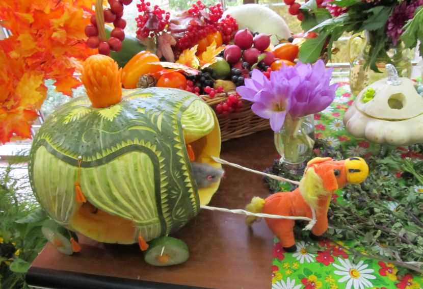 Можно смастерить поделки «дары осени» из овощей. Хотя надолго их оставлять для украшения интерьеров нельзя, так как они имеют обыкновение быстро портиться. Но такие поделки всегда прекрасно смотрятся и собирают большое количество зрителей.
