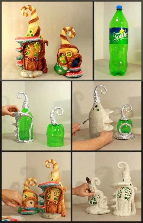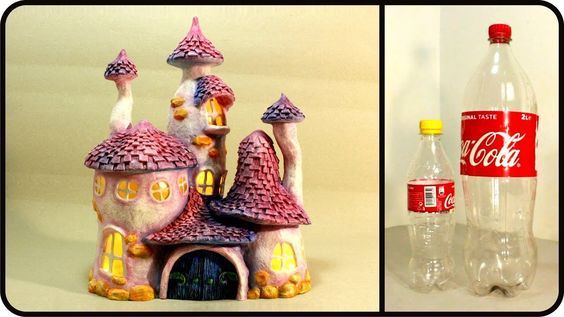 Пожалуй, одна из самых волшебных поделок из пластиковых бутылок — это сказочный домик:
