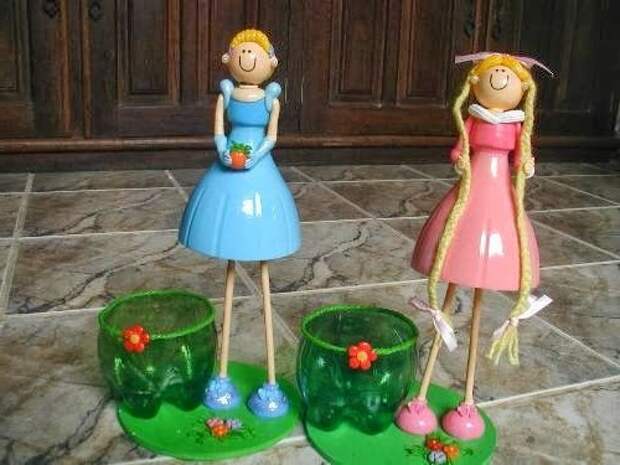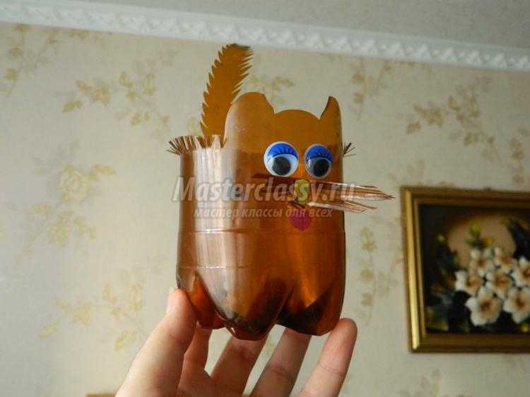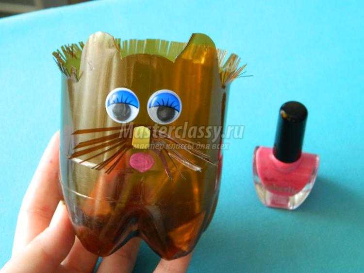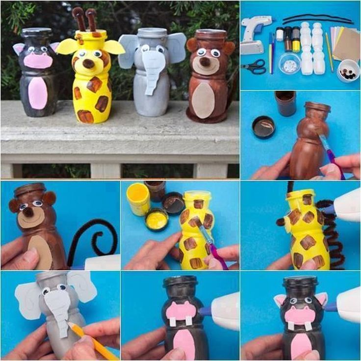 С большинством этих поделок детки могут справиться и без помощи взрослых, нужно будет просто подготовить все необходимое для их создания и при необходимости помочь обрезать бутылку или разрезать ее на нужные части.