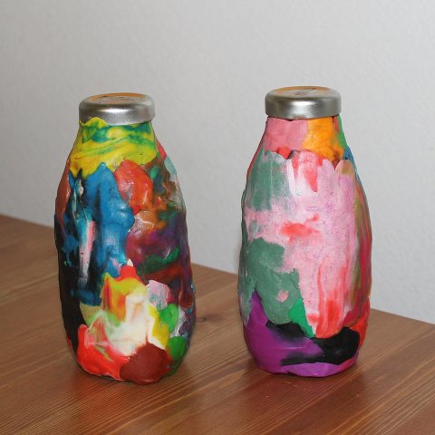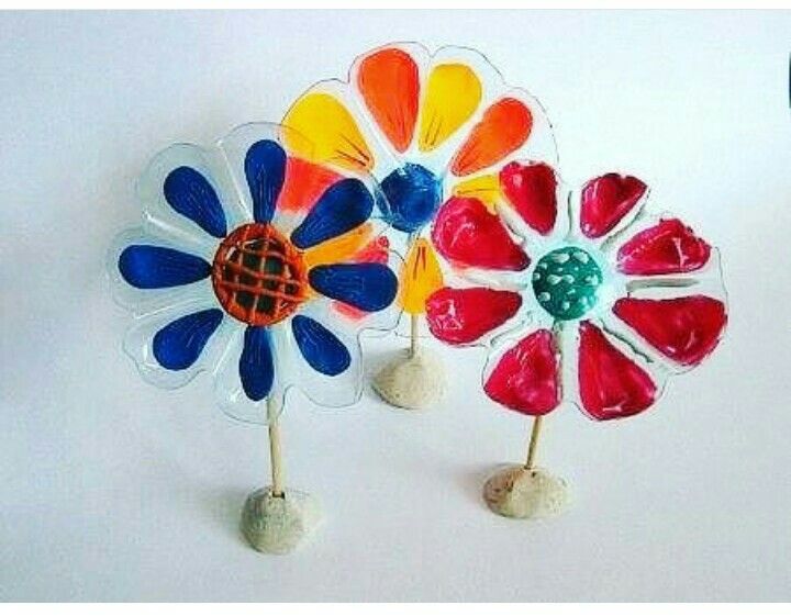 Это вполне доступный и довольно податливый материал, поэтому незамысловатые поделки из пластиковых бутылок своими руками смогут смастерить даже детки детсадовского возраста. Основной принцип работы сводится к окрашиванию или оклеиванию целой бутылки или ее фрагмента, что не сложно сделать даже малышам.