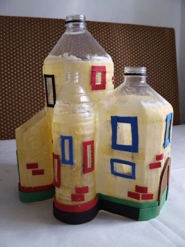 Рот из картона и пластиковых бутылокДомики из пластиковых бутылок своими руками