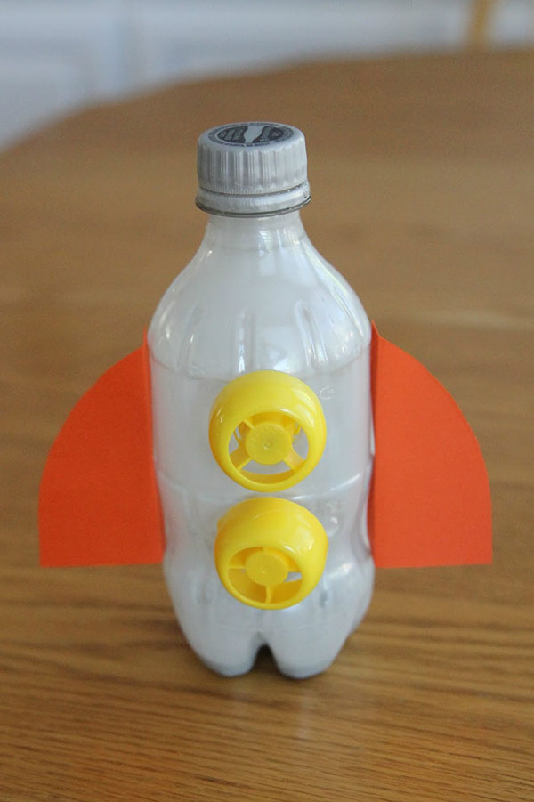 - Слепите ракету из пластилина. Прикрепите его к диску. Затем можно раскрасить диск красками.