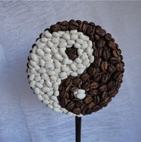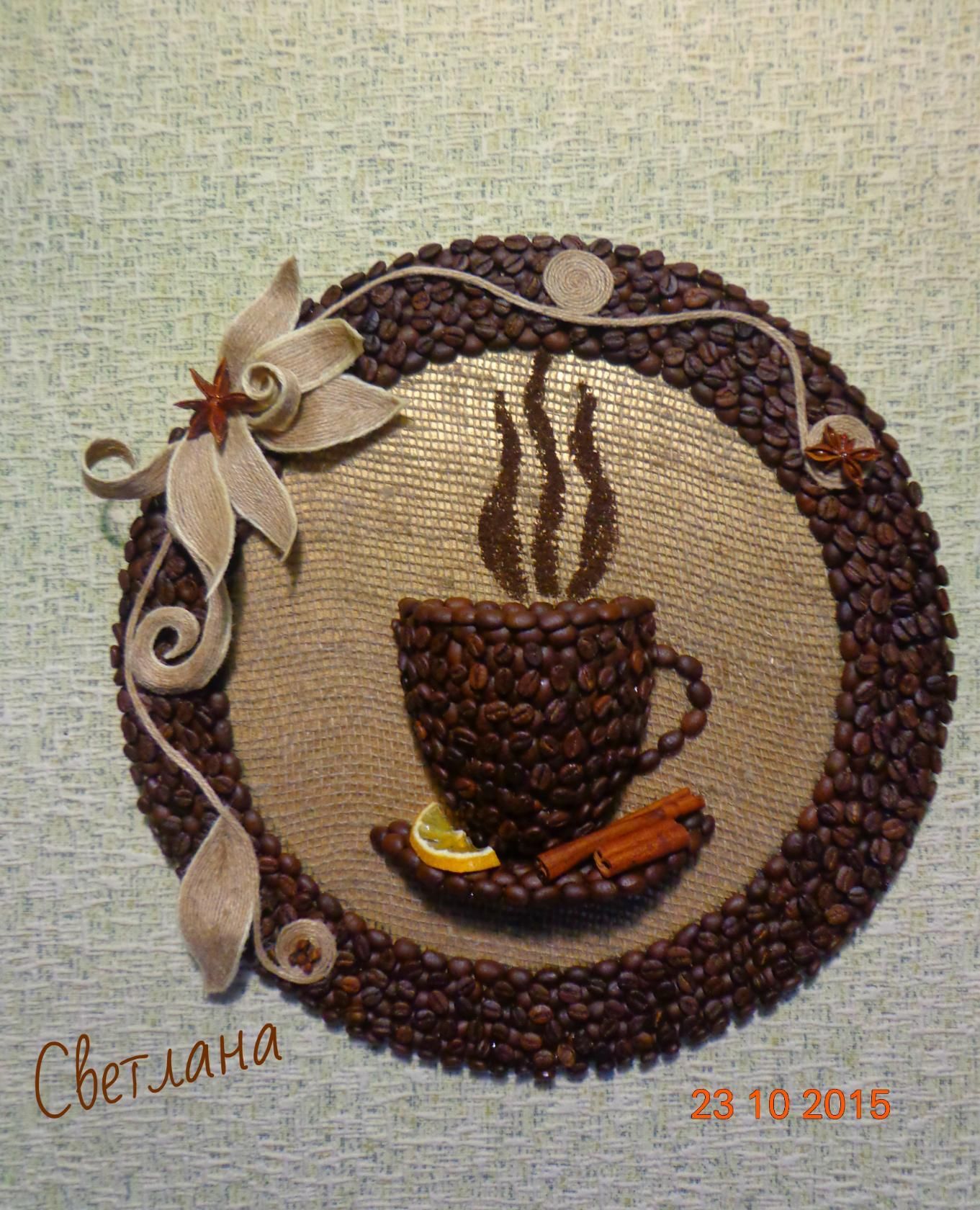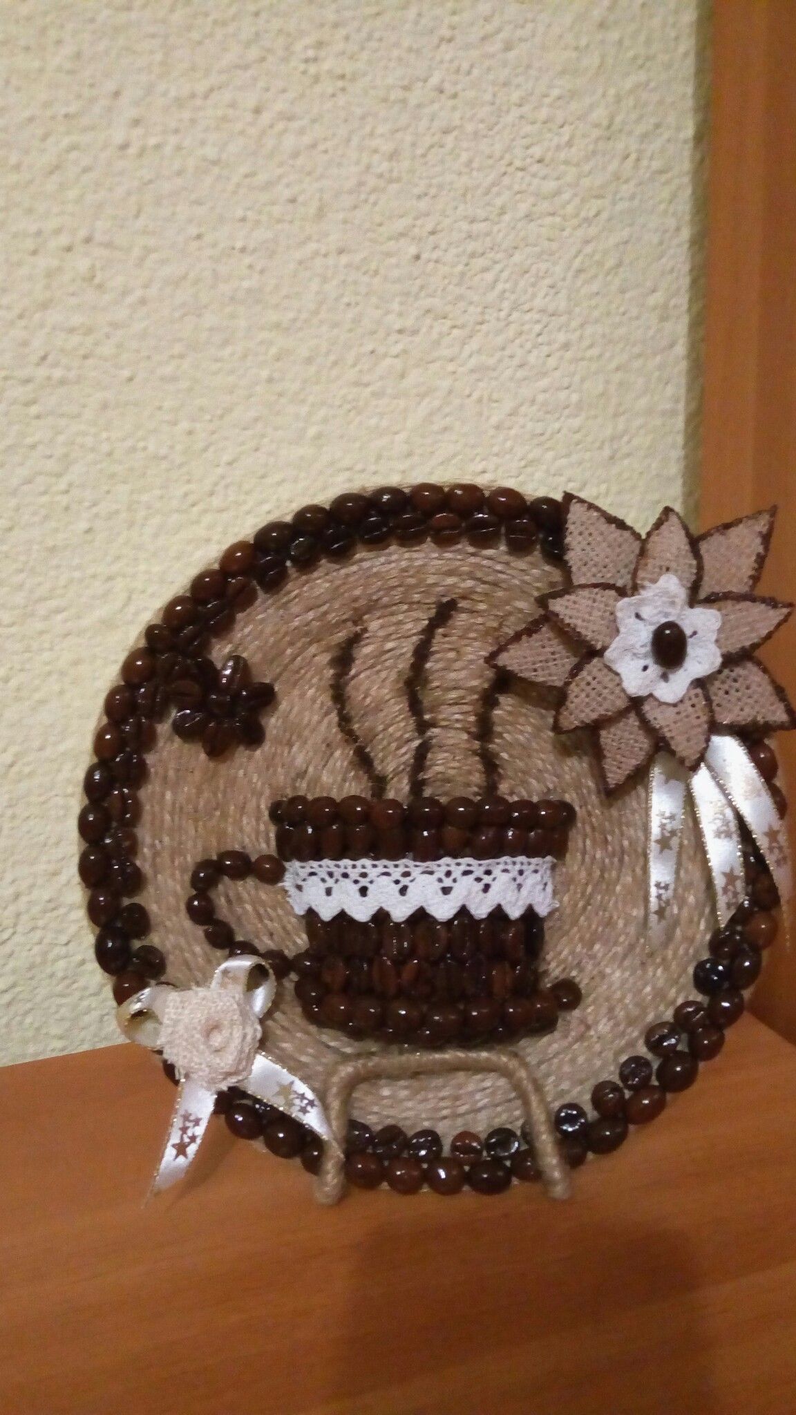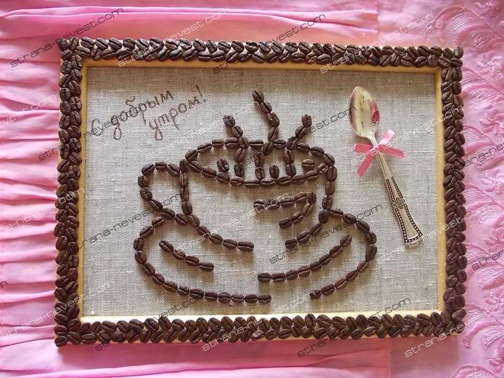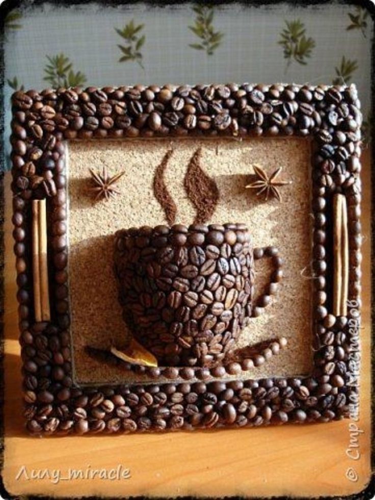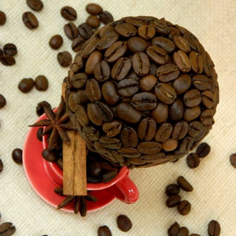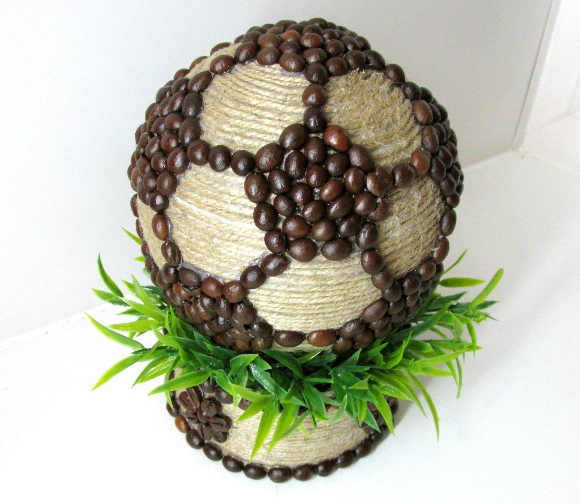 - Округлая верхняя часть. Для этого используются разнообразные предметы, но лучше всего выглядит поделка из кофейных зерен.