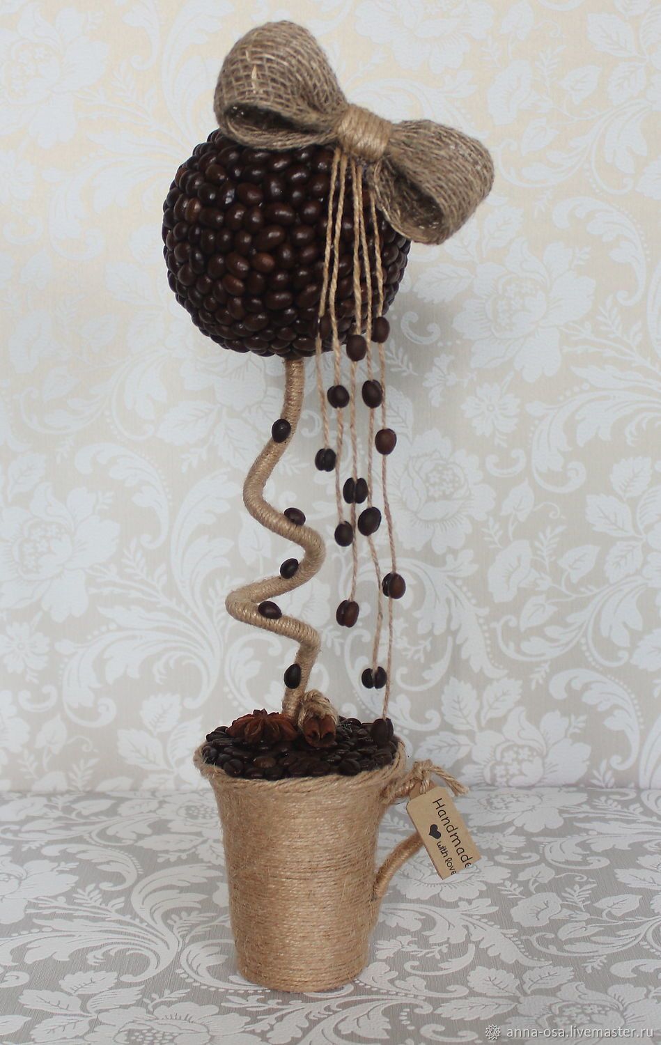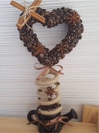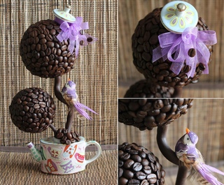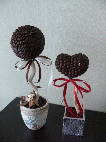 Материалами для таких поделок становятся любые предметы из домашнего обихода. Чаще всего рукодельницы используют своих шедевров кофейные зерна. Они помогают создать оригинальные ароматные предметы интерьера. Узнайте как можно сделать топиарий или кофейную игрушку своими руками быстро и красиво. Детальные мастер-классы далее.