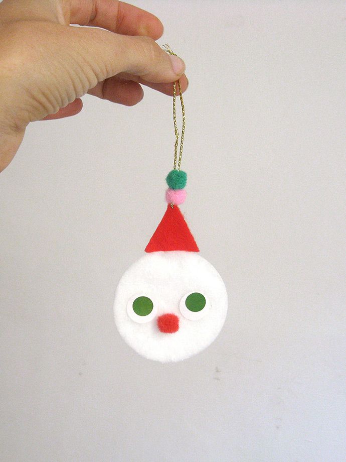 Еще одна оригинальная поделка на Новый год — игрушка-снеговик. Сделать такое чудо очень просто.