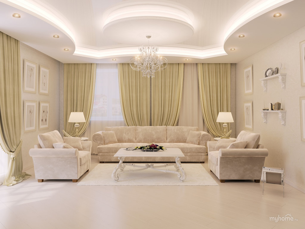 Красивый Потолок из Гипсокартона в Зале + 80 ФОТО Дизайна