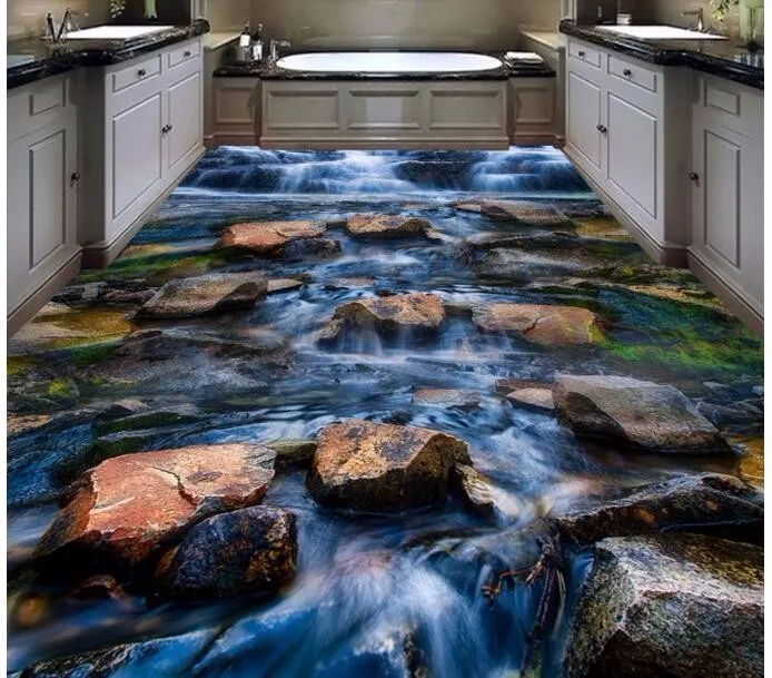 - Влагостойкость, водонепроницаемость. 3Д полы идеально подходят для ванны, туалета, бассейна. Они не пропускают влагу, не плесневеют и не деформируются.
