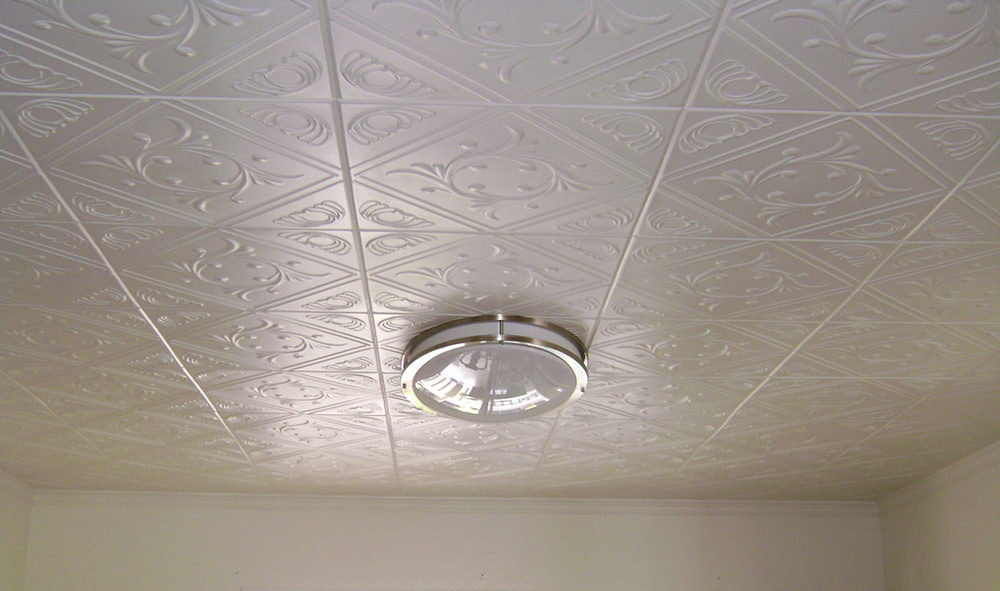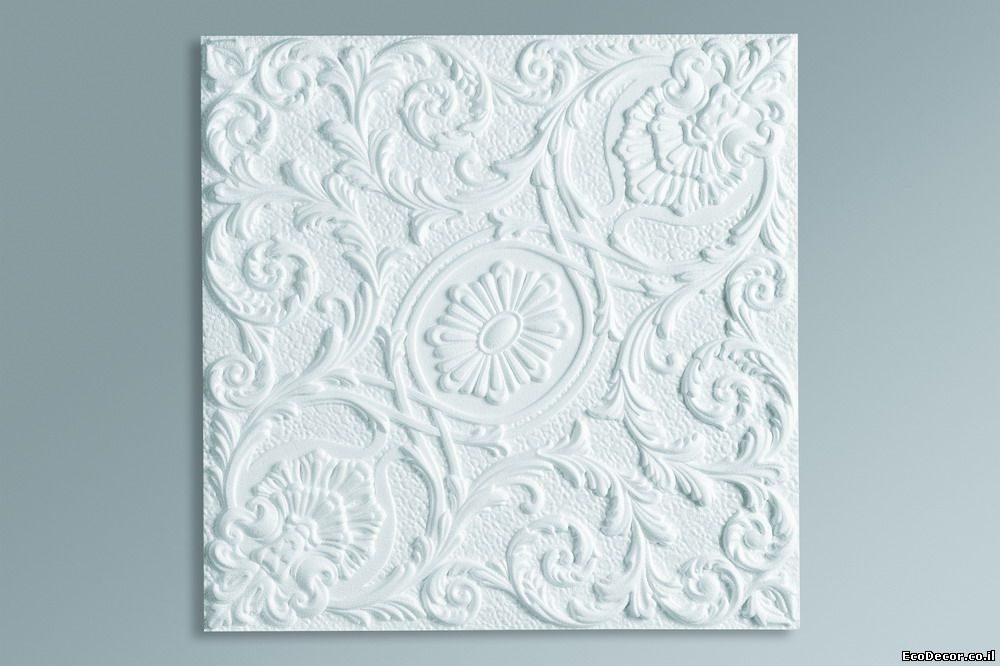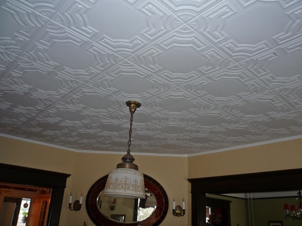 квадраты из бесшовных плиток, пенопластовые панели в интерьере, уголки для потолочных плит