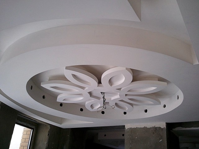 Потолок из гипсокартона круглой, овальный или другой формы при устройстве ступенчатого перехода имеет ряд технологических особенностей и хитростей: