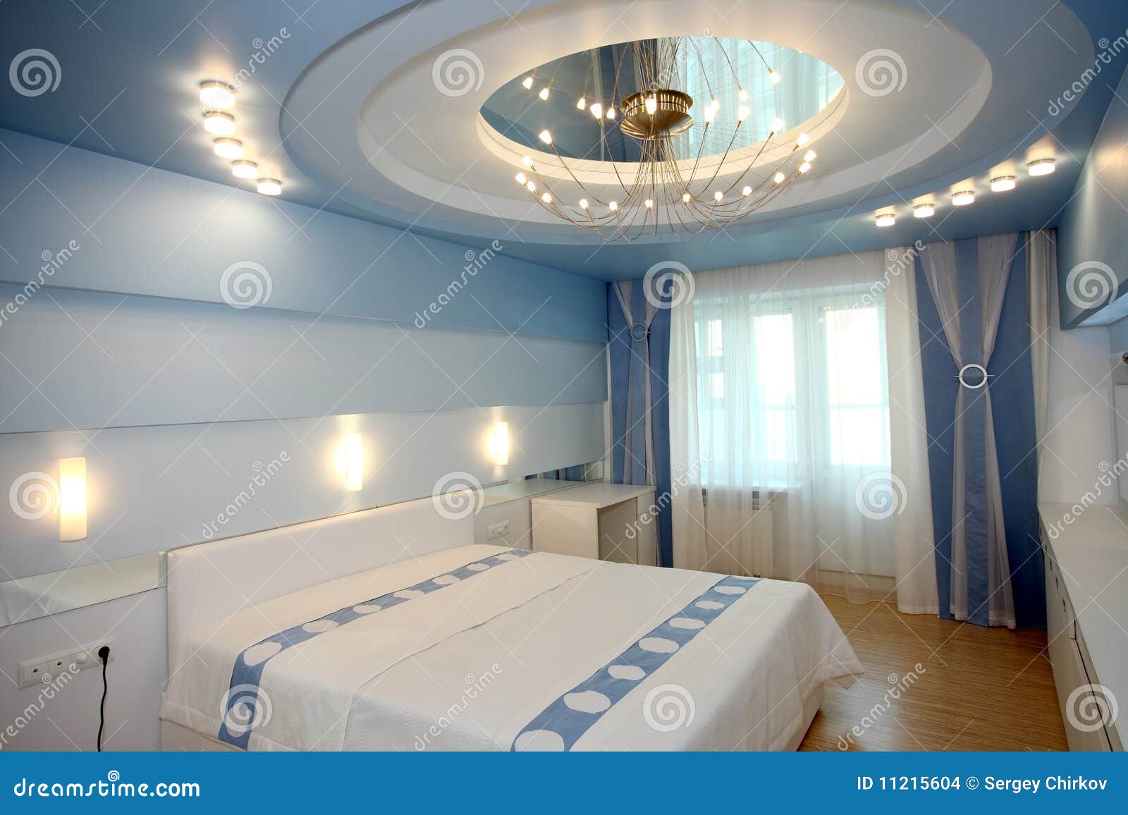 Роль освещения в интерьере нельзя недооценивать. Дизайн предусматривает различные варианты подсветки: встроенные светильники, подвесные люстры, бра, торшеры. В зависимости от требований дизайн интерьера выбирают холодное или теплое свечение.