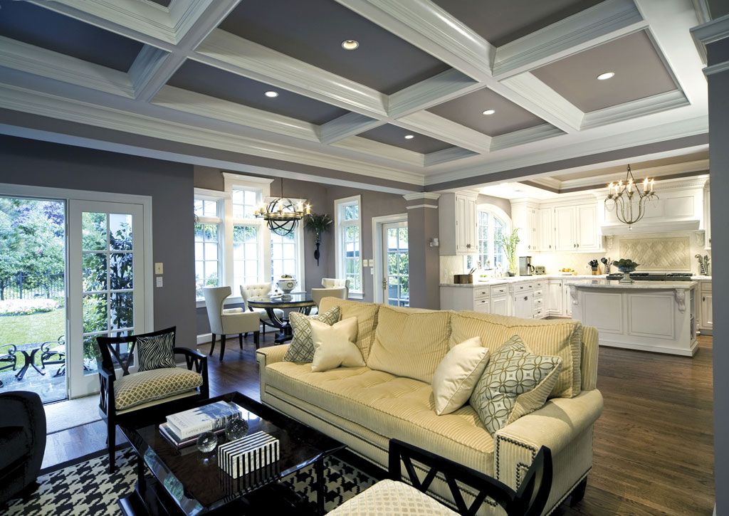 Кессонные потолки — прием из прошлого. Приглушить пафос классического интерьера поможет цвет. Например, черный.