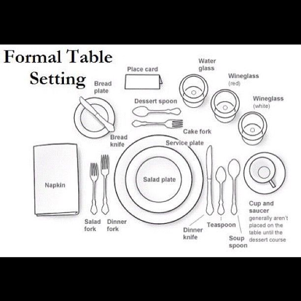 Правила этикета предписывают расстановку всех столовых приборов для каждого члена семьи. На фото вы можете увидеть схему их расположения.