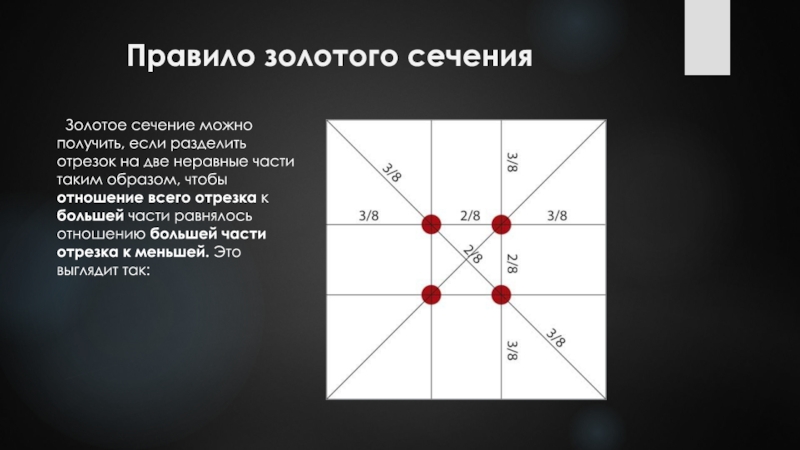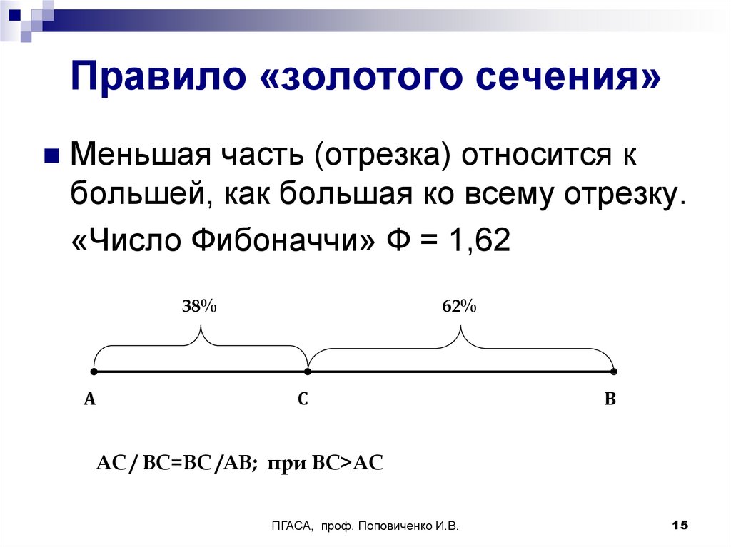 ΠΏΡΡΠΌΠΎΡΠ³ΠΎΠ»ΡΠ½ΠΈΠΊΠΎΠ². ΠΠ°ΡΠ΅ΠΌ ΡΠ΅ΡΠΊΡ ΠΌΠΎΠΆΠ½ΠΎ ΠΈΡΠΏΠΎΠ»ΡΠ·ΠΎΠ²Π°ΡΡ ΡΠ°ΠΊ ΠΆΠ΅, ΠΊΠ°ΠΊ ΡΡΠ°Π΄ΠΈΡΠΈΠΎΠ½Π½ΠΎΠ΅ ΠΏΡΠ°Π²ΠΈΠ»ΠΎ ΡΡΠ΅ΡΠ΅ΠΉ, Π½ΠΎ Ρ Π±ΠΎΠ»Π΅Π΅ Π±Π»ΠΈΠ·ΠΊΠΈΠΌ ΠΏΡΠΈΠ±Π»ΠΈΠΆΠ΅Π½ΠΈΠ΅ΠΌ ΠΊ ΠΊΠΎΡΡΡΠΈΡΠΈΠ΅Π½ΡΡ.Π’Π°ΠΊΠΈΠΌ ΠΎΠ±ΡΠ°Π·ΠΎΠΌ, ΡΠ°Π·ΠΌΠ΅Ρ ΠΊΠ°ΠΆΠ΄ΠΎΠ³ΠΎ ΠΏΡΡΠΌΠΎΡΠ³ΠΎΠ»ΡΠ½ΠΈΠΊΠ° Π΄Π»Ρ ΠΈΠ·ΠΎΠ±ΡΠ°ΠΆΠ΅Π½ΠΈΡ Π·ΠΎΠ»ΠΎΡΠΎΠ³ΠΎ ΡΠ΅ΡΠ΅Π½ΠΈΡ Π±ΡΠ΄Π΅Ρ 1: 0,618: 1.