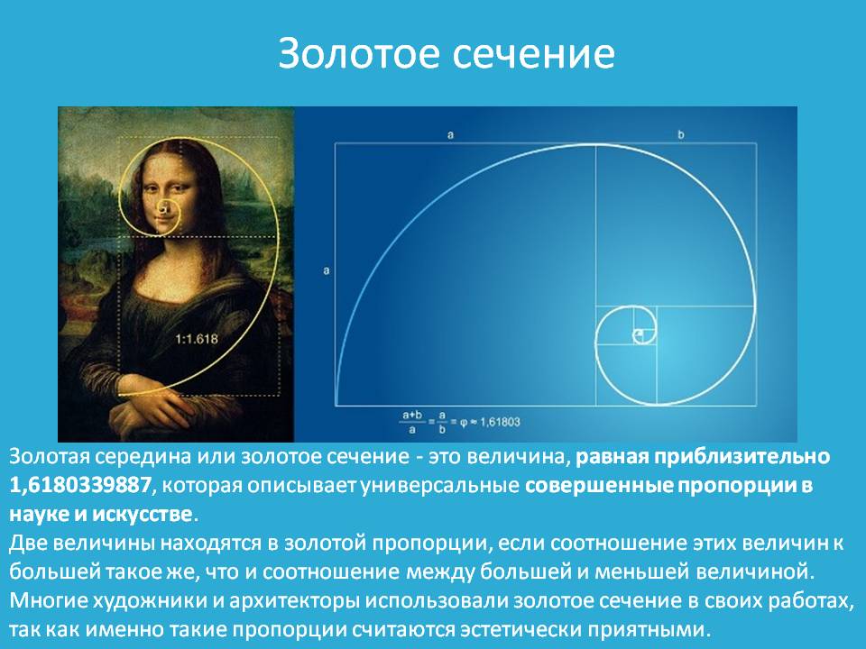 ΠΡΠ° Π±ΠΎΠΆΠ΅ΡΡΠ²Π΅Π½Π½Π°Ρ ΠΏΡΠΎΠΏΠΎΡΡΠΈΡ, ΡΠ°ΠΊΠΆΠ΅ ΠΈΠ·Π²Π΅ΡΡΠ½Π°Ρ ΠΊΠ°ΠΊ Π·ΠΎΠ»ΠΎΡΠΎΠ΅ ΡΠ΅ΡΠ΅Π½ΠΈΠ΅, Π±ΠΎΠΆΠ΅ΡΡΠ²Π΅Π½Π½ΠΎΠ΅ ΡΠ΅ΡΠ΅Π½ΠΈΠ΅, ΠΈΠ»ΠΈ Π·ΠΎΠ»ΠΎΡΠ°Ρ ΠΏΡΠΎΠΏΠΎΡΡΠΈΡ ΠΌΠΎΠΆΠ΅Ρ Π±ΡΡΡ ΠΏΡΠΈΠΌΠ΅Π½Π΅Π½Π° ΠΊ ΡΠ°Π·Π»ΠΈΡΠ½ΡΠΌ Π²ΠΈΠ΄Π°ΠΌ ΠΈΡΠΊΡΡΡΡΠ²Π° ΠΈ ΠΎΠ±ΡΡΠ΅Π½ΠΈΡ. Π£ΡΠ΅Π½ΡΠ΅ ΡΡΠ²Π΅ΡΠΆΠ΄Π°ΡΡ, ΡΡΠΎ ΡΠ΅ΠΌ Π±Π»ΠΈΠΆΠ΅ ΠΎΠ±ΡΠ΅ΠΊΡ ΠΊ Π·ΠΎΠ»ΠΎΡΠΎΠΌΡ ΡΠ΅ΡΠ΅Π½ΠΈΡ, ΡΠ΅ΠΌ Π»ΡΡΡΠ΅ ΡΠ΅Π»ΠΎΠ²Π΅ΡΠ΅ΡΠΊΠΈΠΉ ΠΌΠΎΠ·Π³ Π²ΠΎΡΠΏΡΠΈΠ½ΠΈΠΌΠ°Π΅Ρ Π΅Π³ΠΎ.