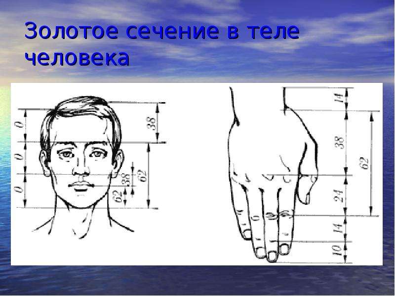 Π ΡΠΊΠΈ ΠΈ ΠΏΠ°Π»ΡΡΡ ΡΠ°ΠΊΠΆΠ΅ ΡΠ²Π»ΡΡΡΡΡ ΠΏΡΠΈΠΌΠ΅ΡΠΎΠΌ Π·ΠΎΠ»ΠΎΡΠΎΠ³ΠΎ ΡΠ΅ΡΠ΅Π½ΠΈΡ. ΠΠΎΡΠΌΠΎΡΡΠΈΡΠ΅ Π±Π»ΠΈΠΆΠ΅! ΠΡΠ½ΠΎΠ²Π°Π½ΠΈΠ΅ Π»Π°Π΄ΠΎΠ½ΠΈ ΠΈ ΠΊΠΎΠ½ΡΠΈΠΊ ΠΏΠ°Π»ΡΡΠ° ΡΠ°Π·Π΄Π΅Π»Π΅Π½ ΡΠ°ΡΡΡΠΌΠΈ (ΠΊΠΎΡΡΡΠΌΠΈ). Π‘ΠΎΠΎΡΠ½ΠΎΡΠ΅Π½ΠΈΠ΅ ΠΎΠ΄Π½ΠΎΠΉ ΡΠ°ΡΡΠΈ Π² ΡΡΠ°Π²Π½Π΅Π½ΠΈΠΈ ΠΊ Π΄ΡΡΠ³ΠΎΠΉ Π²ΡΠ΅Π³Π΄Π° 1,618! ΠΠ°ΠΆΠ΅ ΠΏΡΠ΅Π΄ΠΏΠ»Π΅ΡΡΡ Ρ ΡΡΠΊΠ°ΠΌΠΈ Π½Π°Ρ