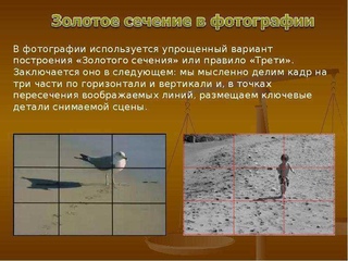ΠΡΠΎΠΌΠ΅ ΡΠΎΠ³ΠΎ, ΡΡΠΈ ΠΏΡΠ°Π²ΠΈΠ»Π° ΠΌΠΎΠ³ΡΡ Π±ΡΡΡ ΠΎΡΠ»ΠΈΡΠ½ΡΠΌΠΈ ΠΎΡΠΈΠ΅Π½ΡΠΈΡΠ°ΠΌΠΈ ΠΏΡΠΈ ΡΠΎΠ·Π΄Π°Π½ΠΈΠΈ ΠΈΠ·ΠΎΠ±ΡΠ°ΠΆΠ΅Π½ΠΈΠΉ. ΠΠΎ ΠΎΠ½ΠΈ ΡΡΠΎΠ»Ρ ΠΆΠ΅ ΡΡΡΠ΅ΠΊΡΠΈΠ²Π½Ρ ΠΏΡΠΈ ΠΊΠ°Π΄ΡΠΈΡΠΎΠ²Π°Π½ΠΈΠΈ ΠΈ ΠΏΠΎΡΡΠΎΠ±ΡΠ°Π±ΠΎΡΠΊΠ΅. ΠΠ½ΠΎΠ³ΠΈΠ΅ ΠΎΠ±ΡΡΠ½ΡΠ΅ ΡΠΎΡΠΎΠ³ΡΠ°ΡΠΈΠΈ ΠΌΠΎΠΆΠ½ΠΎ ΡΠΎΡ ΡΠ°Π½ΠΈΡΡ ΠΏΡΡΠ΅ΠΌ ΡΠ²ΠΎΡΡΠ΅ΡΠΊΠΎΠΉ ΠΎΠ±ΡΠ΅Π·ΠΊΠΈ.