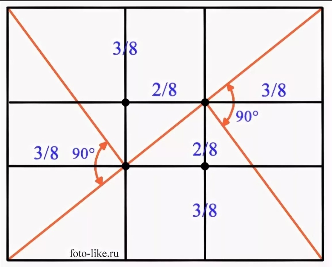 ΠΠ°ΠΊ ΡΠΊΠ°Π·Π°Π½ΠΎ Π²ΡΡΠ΅, ΠΌΠ½ΠΎΠ³ΠΈΠ΅ ΡΠΎΡΠΎΠ³ΡΠ°ΡΡ ΠΈΡΠΏΠΎΠ»ΡΠ·ΡΡΡ ΠΏΡΠ°Π²ΠΈΠ»ΠΎ ΡΡΠ΅ΡΠ΅ΠΉ ΠΊΠ°ΠΊ ΡΠΏΡΠΎΡΠ΅Π½Π½ΡΡ ΡΠΎΡΠΌΡ ΡΠΎΠΎΡΠ½ΠΎΡΠ΅Π½ΠΈΡ. Π ΠΡΠ°Π²ΠΈΠ»Π΅ ΡΡΠ΅ΡΠ΅ΠΉ Π²Ρ ΠΏΡΠΎΡΡΠΎ Π΄Π΅Π»ΠΈΡΠ΅ ΡΡΠ΅ΠΉΠΌ Π½Π° ΡΡΠ΅ΡΡΠΈ ΡΠ°ΡΡΠΈ ΠΏΠΎ Π²Π΅ΡΡΠΈΠΊΠ°Π»ΠΈ ΠΈ Π³ΠΎΡΠΈΠ·ΠΎΠ½ΡΠ°Π»ΠΈ. ΠΠ°ΠΆΠ½ΡΠ΅ ΡΠ»Π΅ΠΌΠ΅Π½ΡΡ ΡΠ°Π·ΠΌΠ΅ΡΠ°ΡΡΡΡ Π½Π° ΠΏΠ΅ΡΠ΅ΡΠ΅ΡΠ΅Π½ΠΈΡΡ