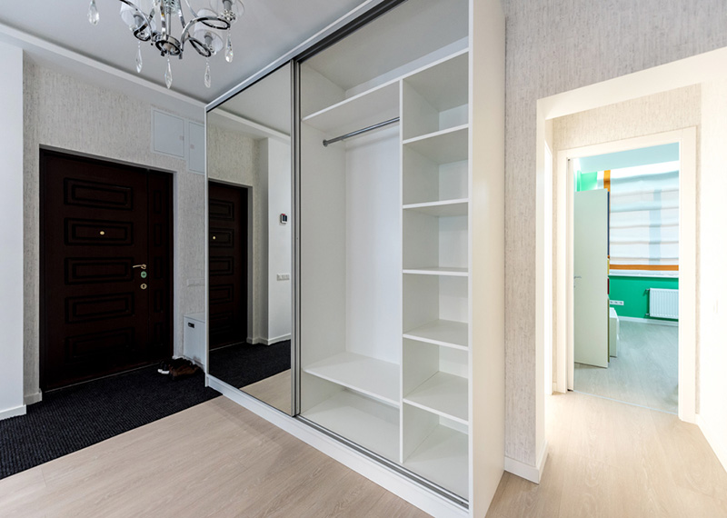 Неплохой идеей сможет стать объединение шкафа с боковой стеной прихожей, в результате чего одна из панелей шкафа может стать дверью в соседнюю комнату.