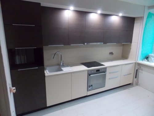 - прямой вариант кухни может быть неудобным в эксплуатации, придется много передвигаться, чтобы достать продукты, помыть и поставить на место посуду;